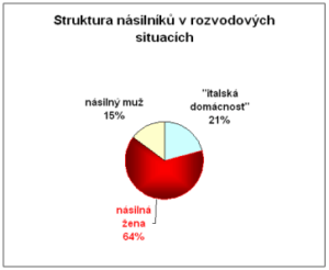 V plné třetině partnerství dojde před a během rozvodu k fyzickému násilí. V České republice je to kolem 11.000 rodin ročně! Sociologické průzkumy dokládají, že přitom v 64 % případů bije žena svého partnera jako první a většinou opakovaně, ve 21 % případů jsou násilní oba partneři stejnou měrou („italská domácnost“). Pouze v 15 % případů uhodí svou partnerku jako první muž, v převážné většině případů ale jen jednorázově, v afektu.